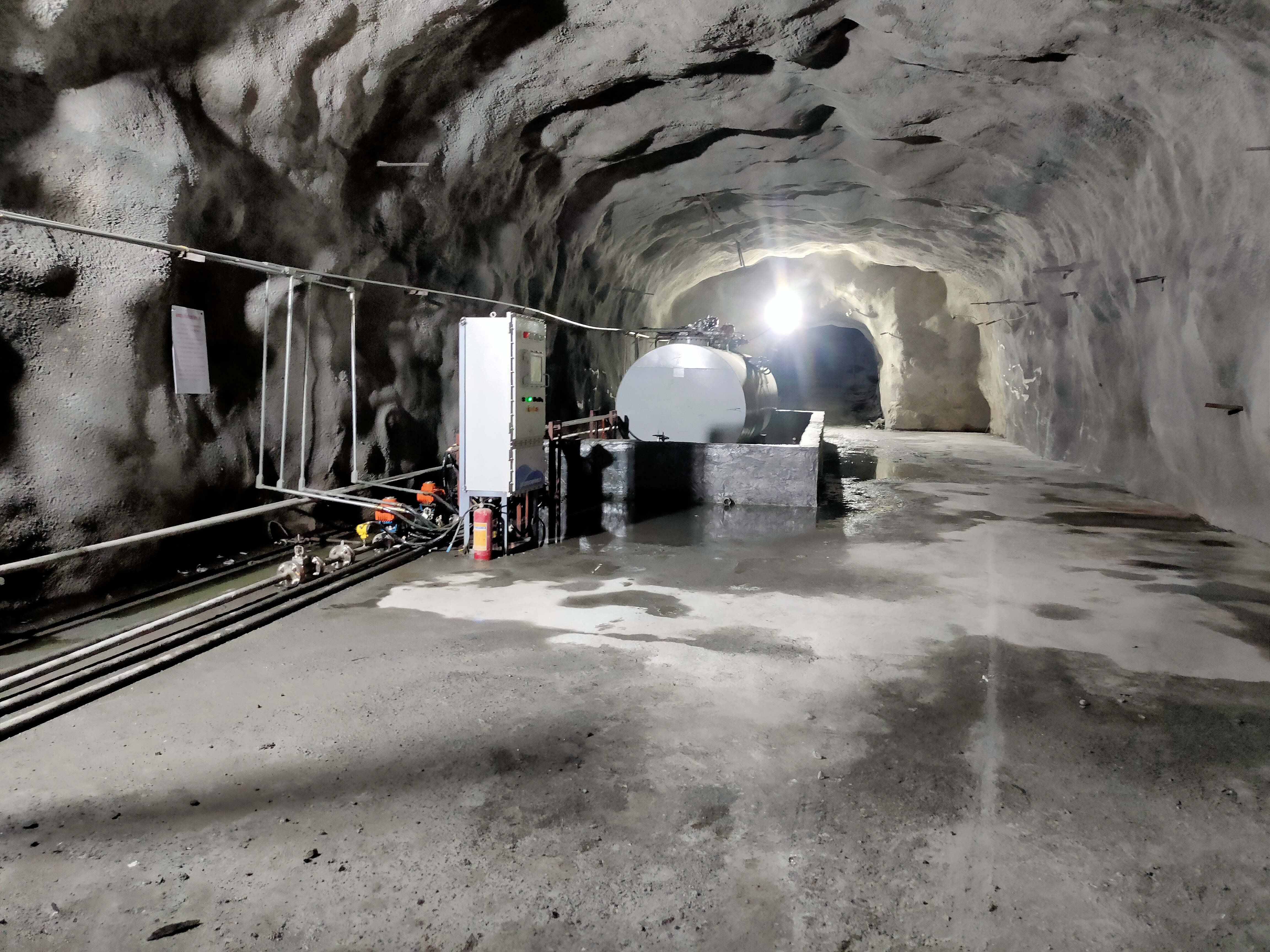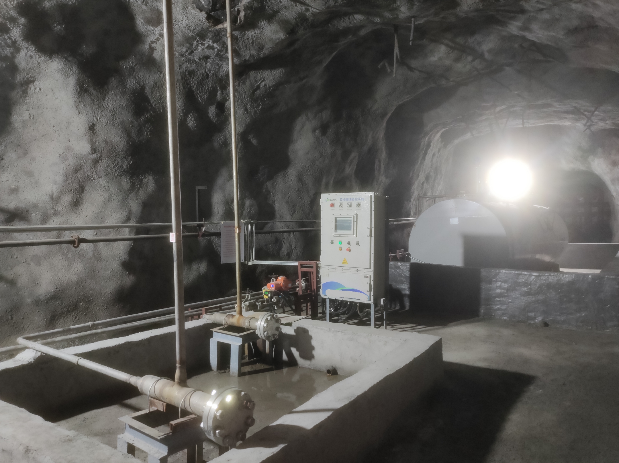 凡口鉛鋅礦井下680米智能供油系統(tǒng) 目前正有序施工中, 預(yù)計(jì)9月底完工并投入使用。該項(xiàng)目為全國首創(chuàng), 由韶關(guān)企業(yè)進(jìn)行技術(shù)攻堅(jiān) 并申請多項(xiàng)國家專利, 擬申報(bào)吉尼斯世界紀(jì)錄 “全球最深的智能供油系統(tǒng)”。 凡口鉛鋅礦井下智能供油系統(tǒng) 需在地面設(shè)置橇裝加油裝置, 并分別在地下 330米、480米和680米處 建設(shè)智能化供油系統(tǒng), 通過鉆孔鋪設(shè)輸油管線, 將油品從地面輸送到井下。 地下330米智能加油點(diǎn), 目前已進(jìn)入收尾階段, 現(xiàn)場有兩根 從地面裝置接下來的輸油管, 用于工程車加油, 另一邊也有兩根輸油管輸送到 地下480米和680米的智能加油點(diǎn)。 別看油管很細(xì),鉆孔不大, 但施工難度并不小, 全長3千多米的輸油管, 垂直打孔偏差不能超過1米。 作為亞洲最大的 單體鉛鋅銀礦生產(chǎn)基地, 凡口鉛鋅礦 有井下工程車輛和設(shè)備100多臺, 井下用油量大。 井下智能化供油系統(tǒng)啟用后, 不僅解決井下用油安全、環(huán)保風(fēng)險(xiǎn), 同時降低生產(chǎn)用油成本, 推進(jìn)凡口鉛鋅礦建設(shè)智能化礦山, 實(shí)現(xiàn)“無人開采”。 如果鉆孔偏差太大,就找不到鉆下來的孔,影響輸油管道的布設(shè),增大成本。3千多米有5千多個焊接點(diǎn),所有的焊接口都要達(dá)到高壓管道的焊接要求,這個項(xiàng)目是全國首創(chuàng),在全國所有礦山企業(yè)中,我們是首次使用通過輸油管道往井下輸油,并且實(shí)現(xiàn)智能控制的方案。 這個月底把地下330米加油點(diǎn)完工,開始加油,9月底把底下480米和680米開通使用。希望通過這個項(xiàng)目打造創(chuàng)新科技的韶關(guān)樣板,把先進(jìn)的經(jīng)驗(yàn)和技術(shù)推廣到全省、全國乃至全球。